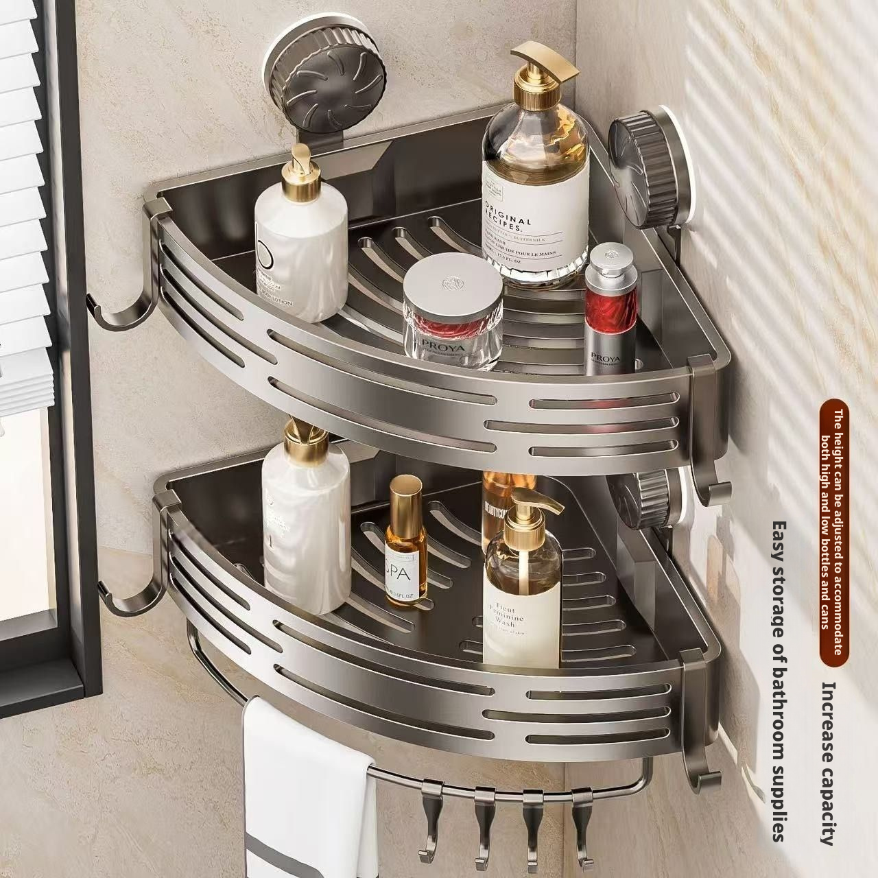 Brand new suction cup and suction attachment with adjustable bathroom shelf spacing · press freely without falling off